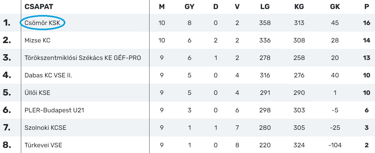 Gólszerzők: Bujdosó 6, Petrik-Varga 6, Kiss 5, Zaklajda 5, Polyák 4, Csupity 3, Talmácsi 3, Tóth 3, Benke 2, Bán 1 ill. Bátky B. 12, Gulyás 6, Szegedi 5, Bártfay 3, Tóth Fekete 3, Homor Dá. 2, Szűcs 2, Paczulák 1. vezetőedző: Hollós Máté ill. Kovács István
