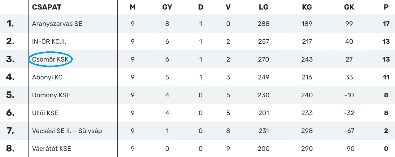 Csömör KSK – Vecsési SE II.-Sülysáp 32–29 (15–14)