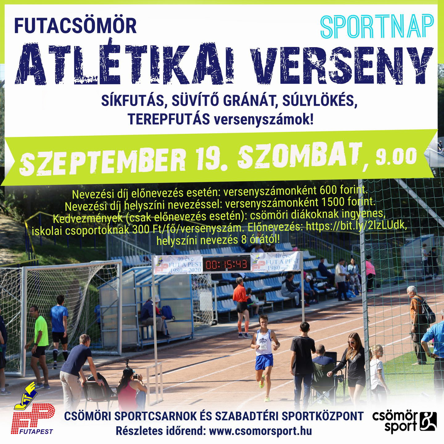Már javában zajlik az előnevezések fogadása az idei Sportnap atlétikai versenyére, csütörtök estig még mindenki megteheti, hogy regisztrálja magát a különböző számokra! Csömöri diákoknak előnevezés esetén ingyenes részvételt biztosítunk!