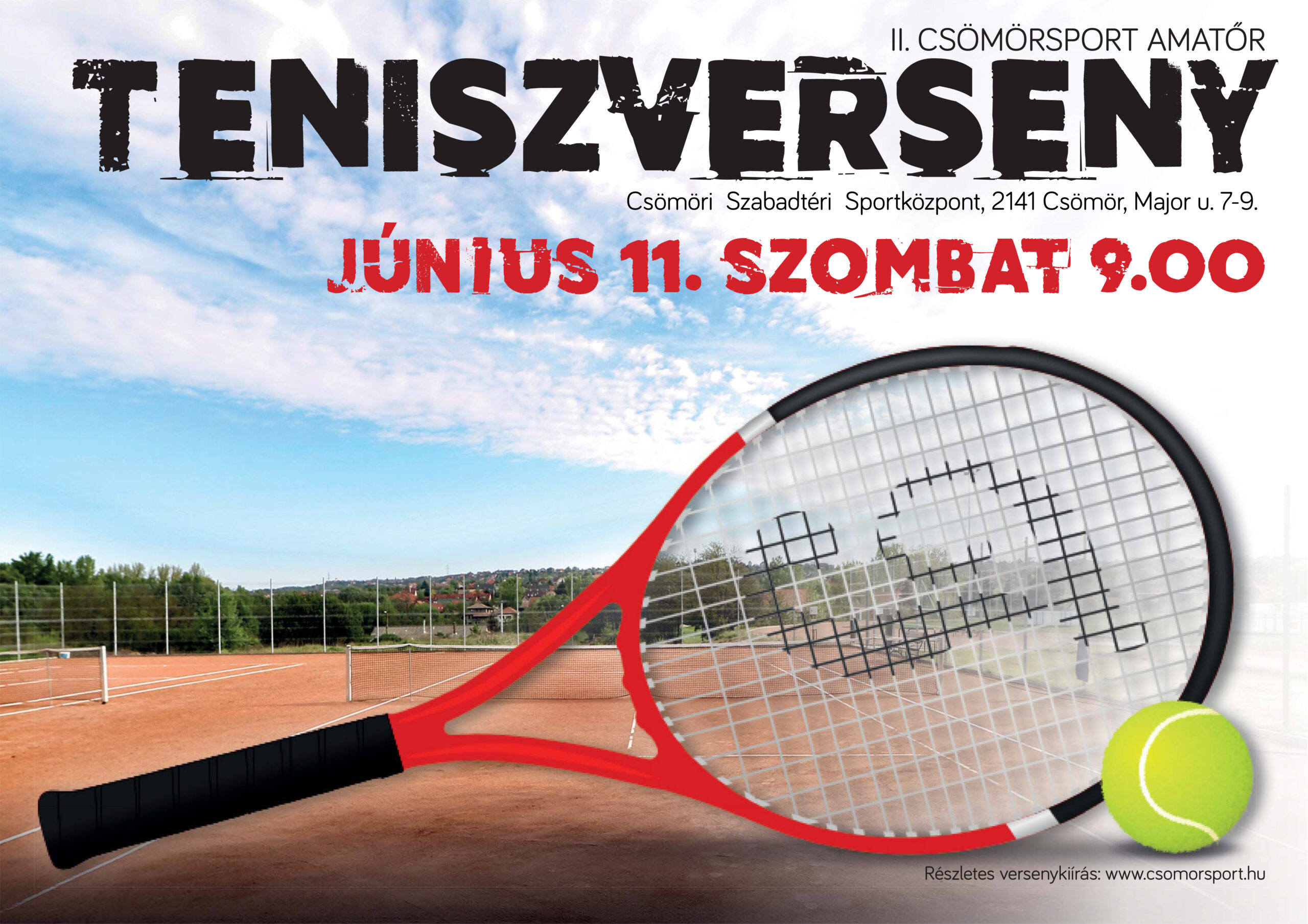Egészen június 11-én szombat reggelig lehet nevezni a II. CsömörSport amatőr teniszversenyre. Az értékes nyeremények mellett remek kikapcsolódási lehetőséget is ígér az egész napos verseny, érdemes tehát odaállni az alapvonalra!