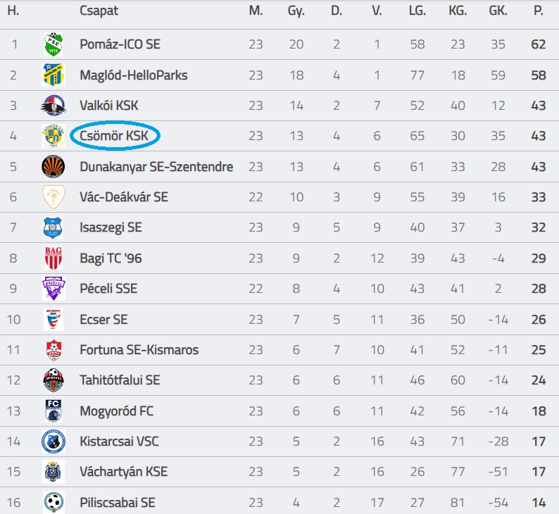 A fordulás után kevésbé volt intenzív a játék, a kapuk nem igazán forogtak veszélyben, a megszerzett három pontnak azonban ennek ellenére is örülhetünk, főleg, hogy a dobogóért zajló küzdelemben közvetlen riválisaink, a valkóiak és a szentendreiek is kikaptak, így hárman is azonos pontszámmal állunk!