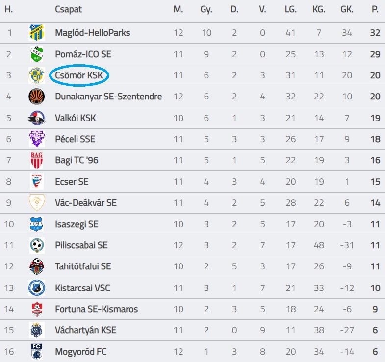 LABDARÚGÁS, PEST MEGYE II, ÉSZAKI-CSOPORT, 12. FORDULÓ
