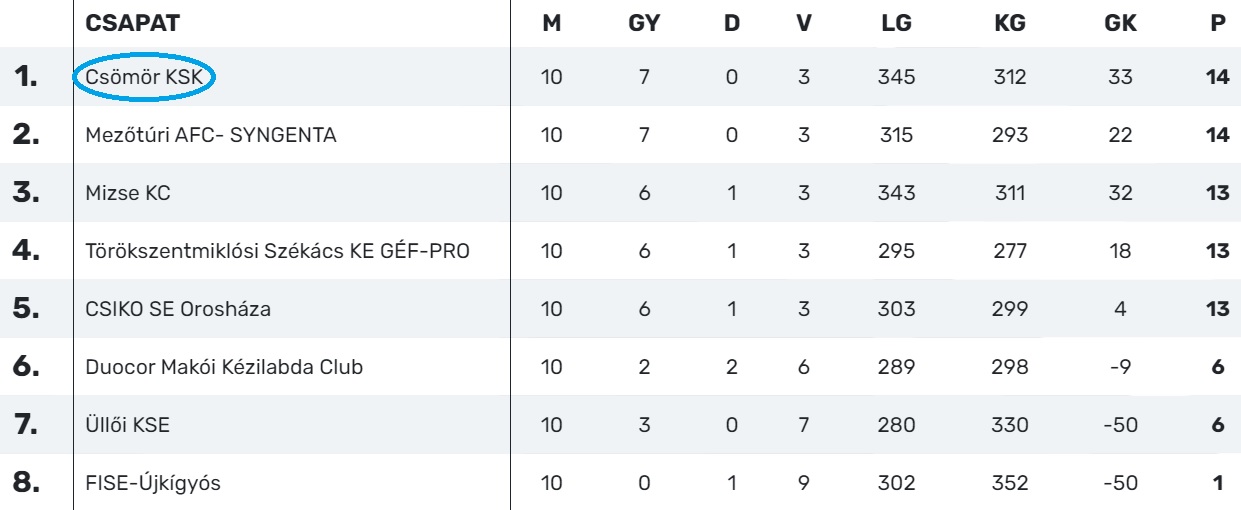 A fordulás után aztán némileg változott a helyzet, zsinórban ötször találtunk be, hatgólos előnynél azonban rögtön időt kért a hazaiak mestere. Rendezték a sorokat, és a hazaiak produkáltak egy hasonló sorozatot, így az utolsó negyedórának döntetlenről futottunk neki. A hajrában aztán megdobbant a csömöri szív, Dombrádi pedig két óriási bravúrt is elővett a tarsolyából az utolsó percben, egy indítást és egy szélsőziccert is hárított, megágyazva ezzel a két bajnoki pontnak. A bravúros sikerrel a csapat átvette a vezetést a tabellán!