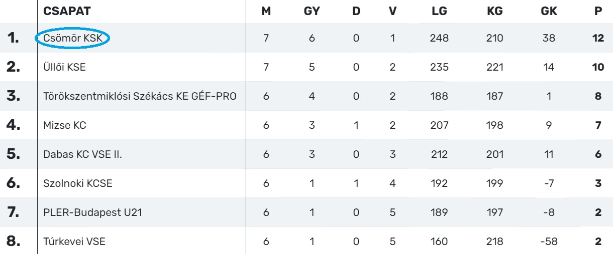 Gólszerzők: Sápi 6, Tóth 5, Márkus 4, Csajbók 3, Kovács 3, Grandjean 2, Györfi 2, Horváth 1, Sáfrány 1, Szilágyi 1 ill. Tóth Fekete 7, Homor Dá. 5, Gulyás 4, Homor Do. 4, Koszorus 4, Bártfay 3, Bátky B. 3, Turák 3, Szegedi 2, Kollonay 1, Szűcs 1. vezetőedző: Szilágyi Péter ill. Kovács István