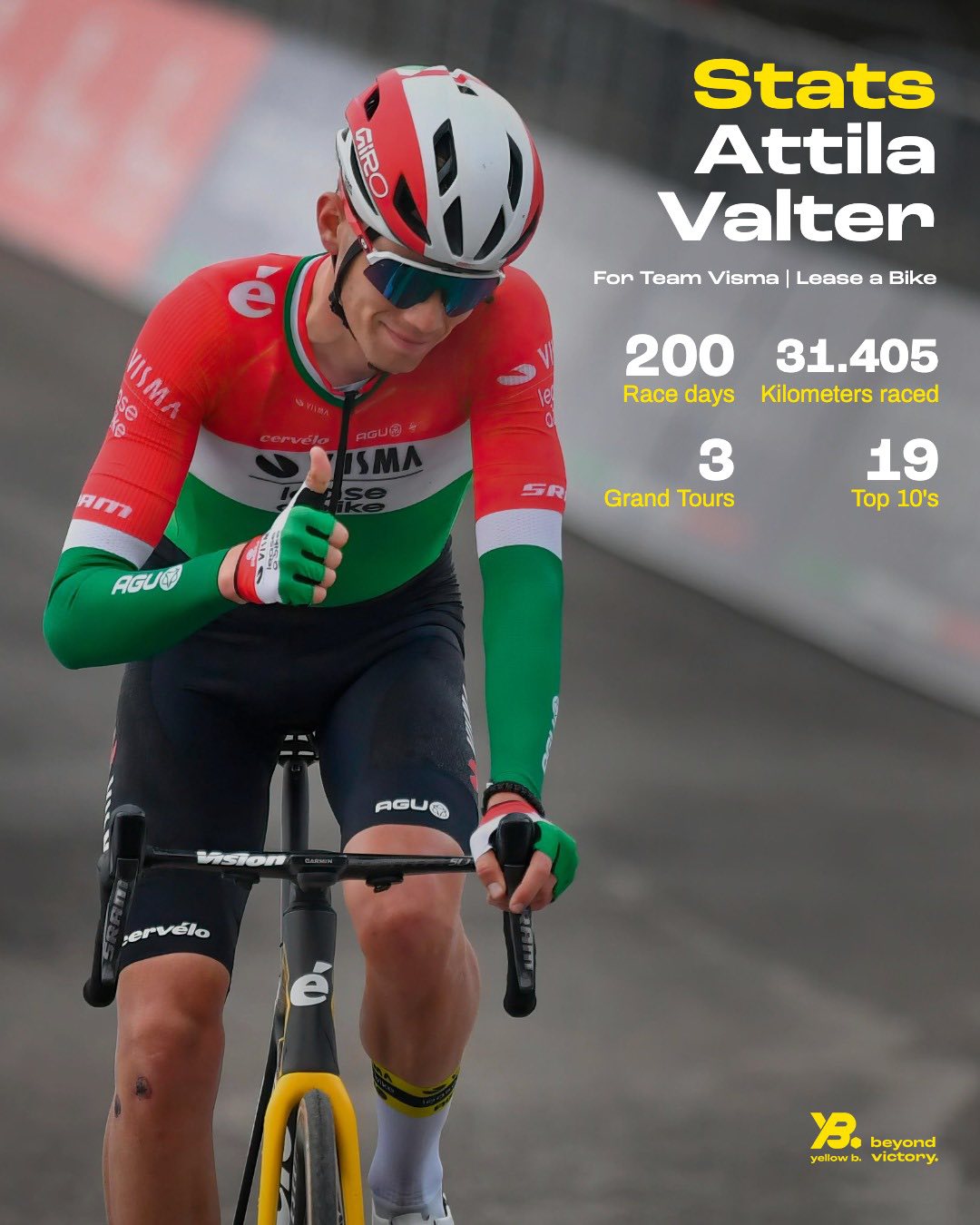 A holland Team Visma | Lease a Bike csapata a közösségi oldalán búcsúzott el csömöri versenyzőjétől, Valter Attilától, aki 2026-tól a Bahrain Victoriousnál folytatja pályafutását.