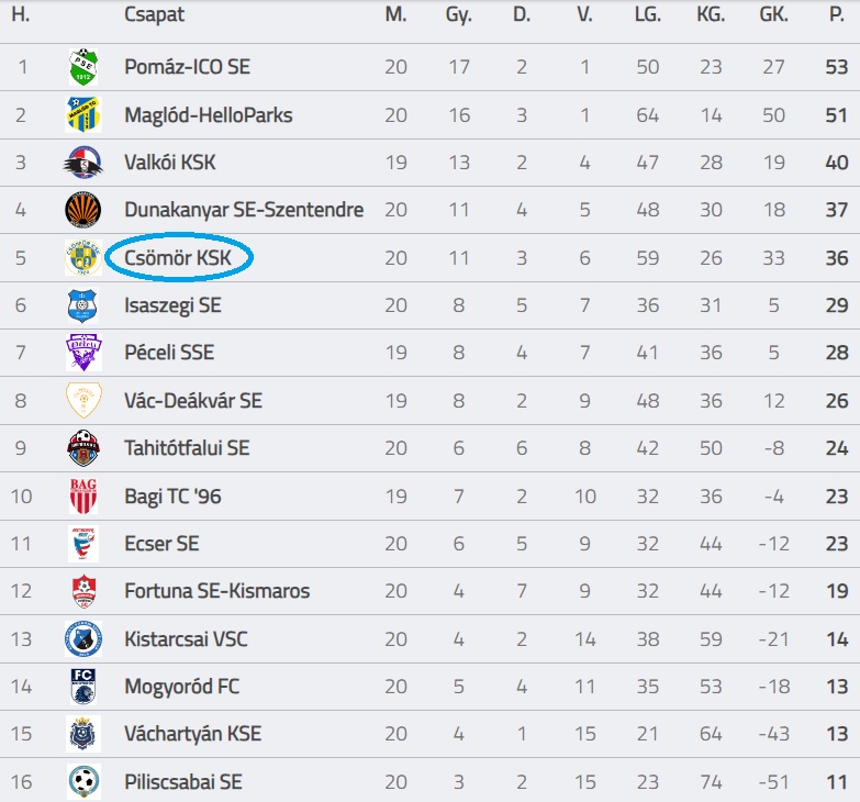 Csömör KSK – Pomáz-ICO SE 1–2 (0–1)