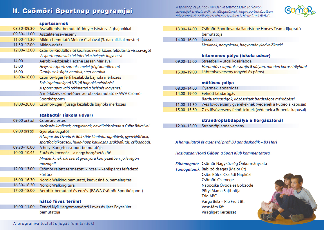 A szórólapot már valószínűleg mindenki megkapta, a plakátot is biztos sokan láttátok, de természetesen innen sem maradhat le a Tavaszi II. Sportnap részletes programja.